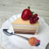 Foaie de cacao usor insiropata,un trio minunat de mousse-uri fine din ciocolata belgiana,realizate dupa o reteta proprie:mousse ciocolata neagra(70% cacao),mousse ciocolata cu lapte(36,5%cacao),mousse ciocolata alba(29,6%cacao).